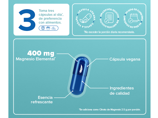 Cada cápsula contiene Citrato de Magnesio en polvo, cuidadosamente elaborado para ayudar a promover la absorción de calcio. Su esencia refrescante y practicidad lo hace ideal para quienes buscan un suplemento práctico y agradable al consumo.