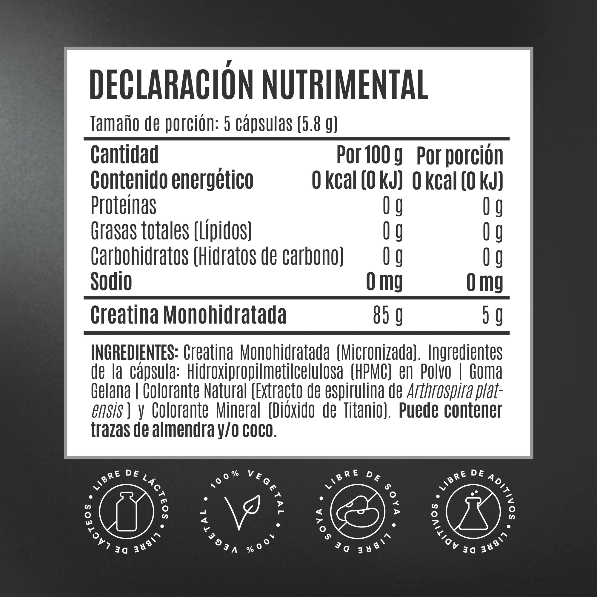 Nuestra creatina monohidratada ha sido micronizada para mejorar su solubilidad y tolerancia, eliminando la necesidad de mezclar polvos. Esta presentación sin sabor en cápsulas te permite llevar tu suplementación a cualquier lugar sin complicaciones.