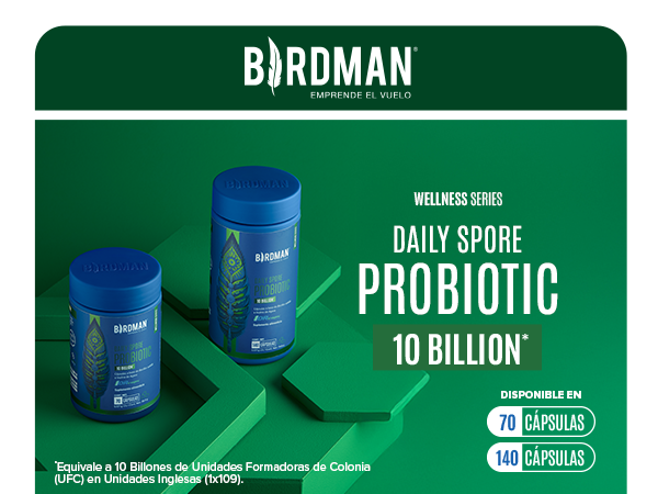Descubre Birdman Daily Spore Probiotic, un suplemento alimenticio premium con 10 billones de UFC diseñado para complementar tu alimentación diaria. Su avanzada fórmula de liberación retardada protege los probióticos durante su tránsito por el sistema digestivo, asegurando una entrega efectiva en el intestino delgado y maximizando su concentración y beneficios.