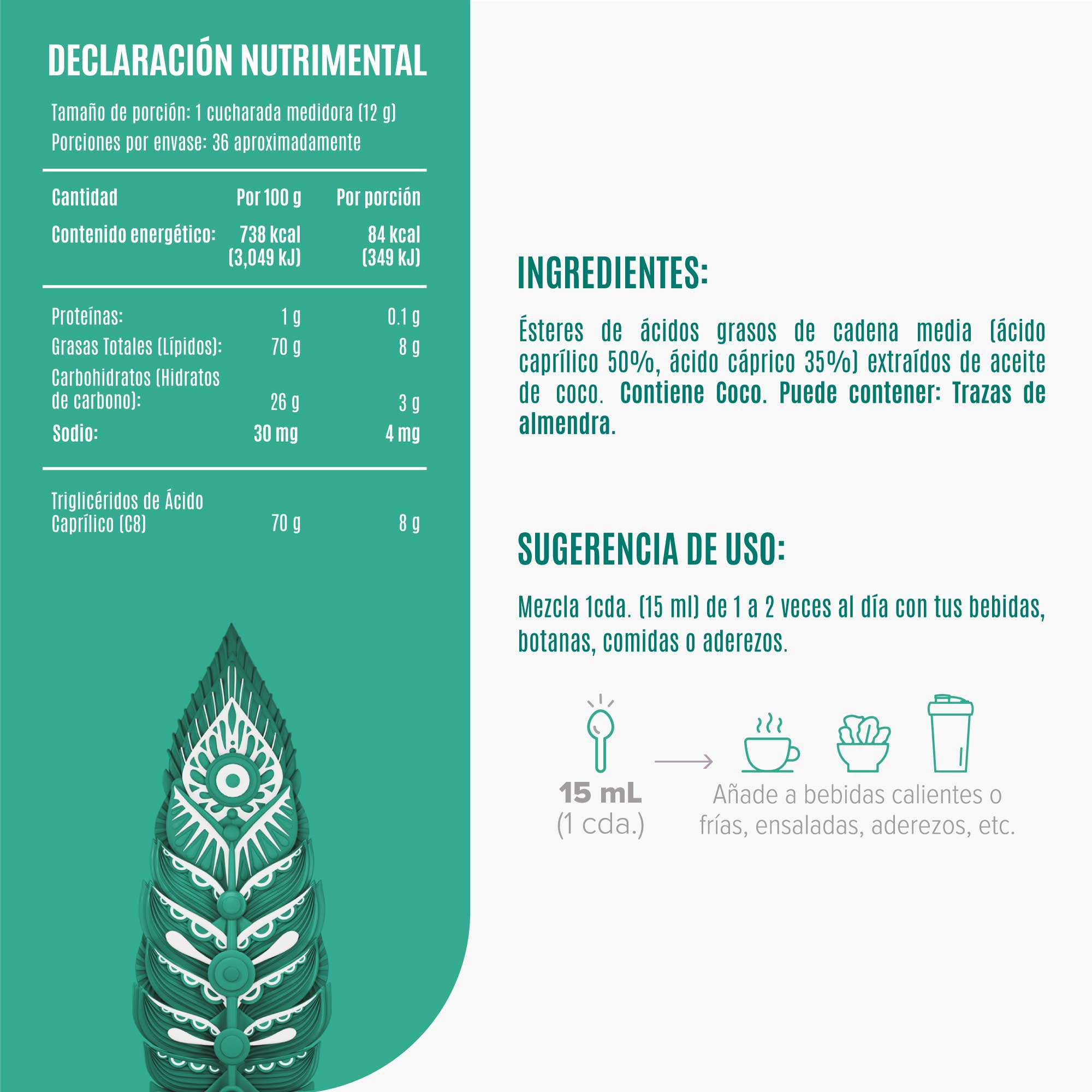 8 gr de MCT Oil por porción